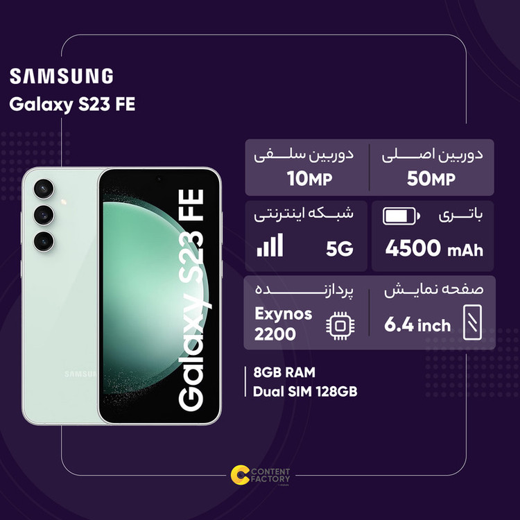 سامسونگ چند سالی است که در کنار رونمایی از پرچمداران قدرتمند خود، گوشی مقرون بهصرفه با مشخصات نزدیک به پرچمداران را معرفی میکند که گوشی موبایل سامسونگ مدل Galaxy S23 FE یکی از آنها است. ظاهر این گوشی ما را به یاد Galaxy S23 و Galaxy S23 Plus میاندازد و از نظر مشخصات فنی در نظر گرفته شده در برخی از بخشها، چیزی کم از آنها ندارد. در نمای روبهرویی این گوشی به صفحهنمایش با ابعاد 6.4 اینچ و رزولوشن 1080×2340 پیکسل از نوع Dynamic AMOLED 2X مجهز شده که توانایی نمایش 403 پیکسل در هر اینچ را دارد. این مشخصات در کنار نرخ بروزرسانی 120 هرتز و حداکثر روشنایی 1450 نیت (nits) سبب شده تا عملکردی بسیار باکیفیت در حد و اندازه گوشیهای پرچمدار را شاهد باشید. در قسمت پشتی هم یک سنسور دوربین اصلی با رزولوشن 50 مگاپیکسل در کنار سنسور 8 مگاپیکسل تلهفوتو با قابلیت زوم سه برابری اپتیکال (زوم بدون کم شدن کیفیت) و سنسور 12 مگاپیکسل از نوع فوقعریض (ultrawide) در نظر گرفته شده است. قابلیت فیلمبرداری با نهایت کیفیت 8K در کنار سنسورهای دوربین در نظر گرفته شده، نشان از آن دارد که میتوانید با خیال راحت در زمینه عکاسی و فیلمبرداری روی این گوشی هوشمند حساب باز کنید. دوربین سلفی با رزولوشن 10 هم در عکاسی و فیلمبرداری، توقعات شما را بهخوبی هرچه تمامتر برآورده میکند. در بخش مشخصات سختافزاری هم این گوشی به پردازنده اختصاصی اگزینوس 2200 سامسونگ مجهز شده و میتوانیم بگوییم که با حضور این پردازنده، سامسونگ Galaxy S23 FE بهراحتی از پس اجرای بازیهای سنگین و برنامههای کاربردی برمیآید. باتری 4500 میلیآمپرساعت در کنار پشتیبانی از فناوری شارژ سریع 25 وات، از دیگر مشخصات در نظر گرفته شده هستند. در مجموع باید بگوییم که اگر به دنبال خرید گوشی هستید که به نسبت پرچمداران قیمتی ارزانتر داشته باشد و از مشخصاتی در حد و اندازه پرچمداران بهره برده باشد، سامسونگ Galaxy S23 FE میتواند انتخاب بسیار مناسبی برای شما باشد.