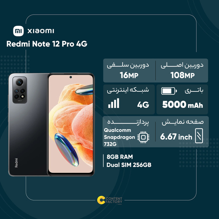 شیائومی Redmi Note 12 Pro 4G یکی از گوشیهای هوشمند میانرده قدرتمند این شرکت است که در برخی از مشخصات فنی در نظر گرفته شده، هیچ چیزی کم از یک گوشی هوشمند پرچمدار و گرانقیمت ندارد. این گوشی به صفحهنمایش با ابعاد 6.67 اینچ و رزولوشن 1080×2400 پیکسل از نوع امولد مجهز شده است. صفحهنمایشی بسیار باکیفیت که با ارائه نرخ بروزرسانی 120 هرتز و روشنایی 1100 نیت (nits)، کیفیتی در حد و اندازه گوشیهای پرچمدار ارائه میکند. دوربین اصلی 108 مگاپیکسل هم بهخوبی تمام توقعات شما را برای عکاسی در نور روز و نور شب برآورده میکند. سنسور 8 مگاپیکسل فوق عریض برای ثبت تصاویر با زاویه دید گسترده، سنسور 2 مگاپیکسل ماکرو برای ثبت تصاویر از فاصله نزدیک و سنسور 2 مگاپیکسل سنجش عمق هم این گوشی هوشمند را همراهی میکنند. دوربین سلفی 16 مگاپیکسل هم در نور روز و نور شب عملکرد کاملا مطلوبی دارد. بهره بردن از پردازنده اسنپدراگون 732G هم سبب شده تا شیائومی Redmi Note 12 Pro 4G بهخوبی از پس اجرای بازیهای سنگین و برنامههای کاربردی بربیاید. باتری 5000 میلیآمپرساعت هم به ازای هر بار شارژ صد درصدی، طول عمر مفید (زمان آماده بهکار) دو روز را در حالت استفاده معمولی ارائه میکند. در مجموع این گوشی با صفحهنمایش قدرتمند، دوربین اصلی 108 مگاپیکسل، پردازنده و باتری مناسب، میتواند گزینه بسیار خوبی در بین گوشیهای میانرده این بازه قیمتی باشد.