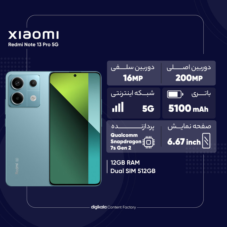 گوشی موبایل شیائومی مدل Redmi Note 13 Pro 5G دو سیم کارت ظرفیت 512 گیگابایت و رم 12 گیگابایت