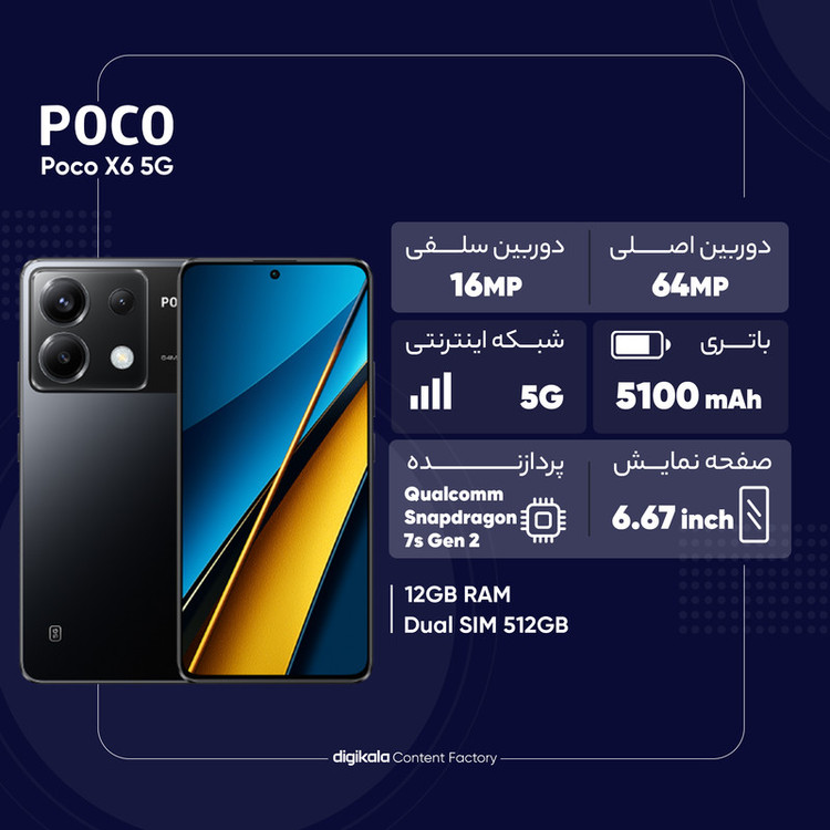گوشی موبایل شیائومی مدل Poco X6 5G دو سیم کارت ظرفیت 256 گیگابایت و رم 12 گیگابایت